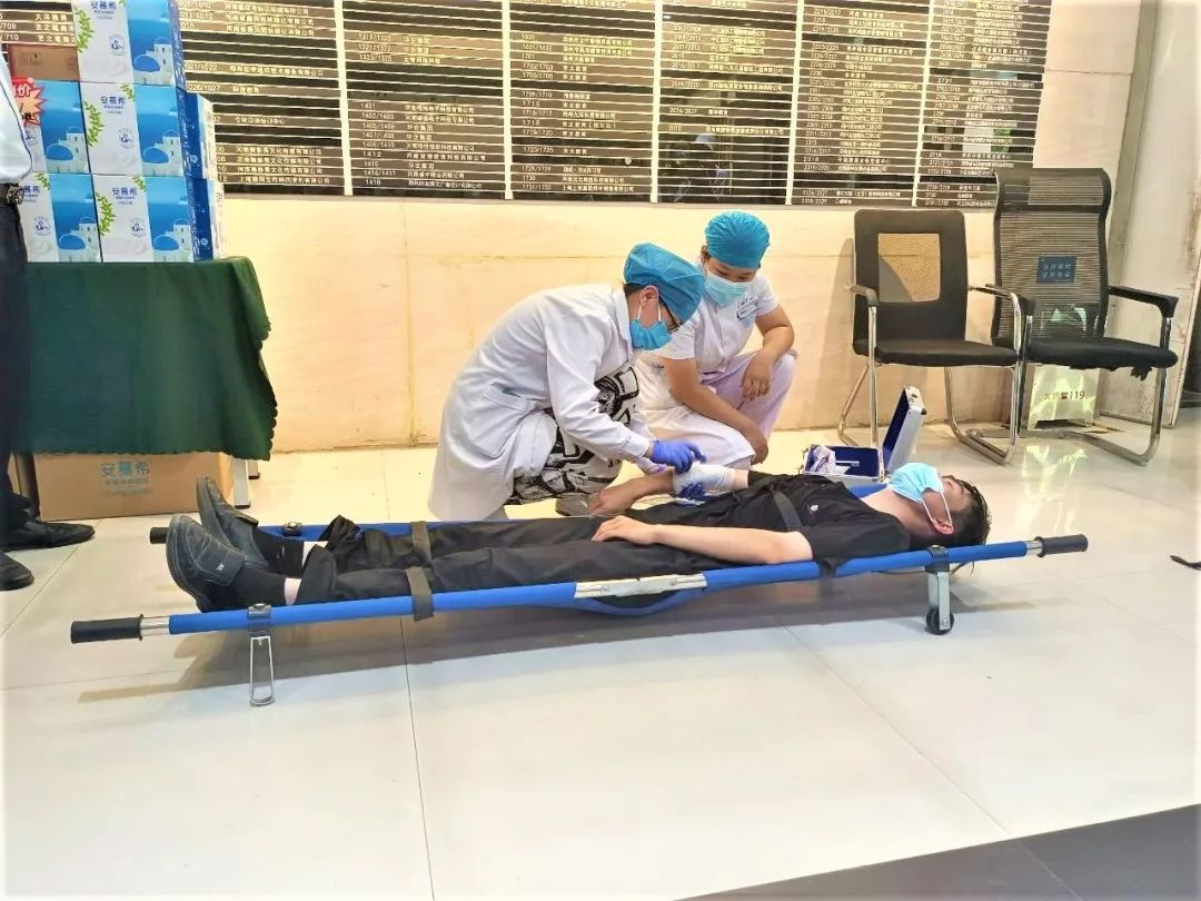 救護組攜帶救護器材,緊隨疏散組后,轉移傷者至救護區進行救護,對傷員進行簡易包扎,并送至地庫東口等待救護車。