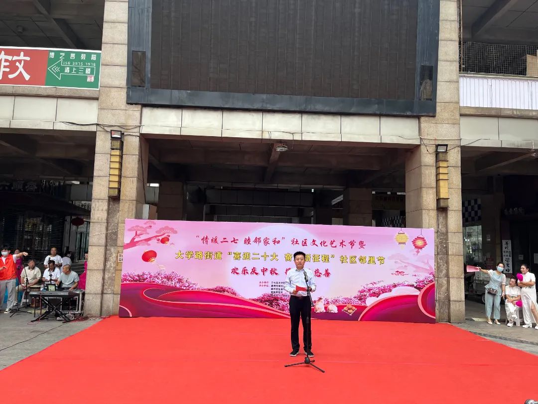 大學(xué)路街道辦主任張斌同志致開場(chǎng)詞。張主任表示,此次活動(dòng),既是喜迎黨二十大的勝利召開,也為豐富轄區(qū)居民社區(qū)文化活動(dòng),打造和諧鄰里、和諧社區(qū),攜手鄰里共做慈善!