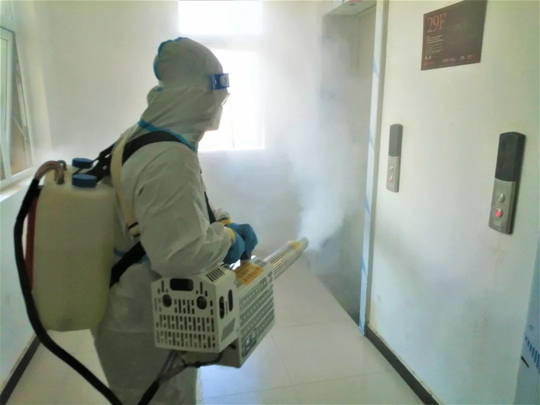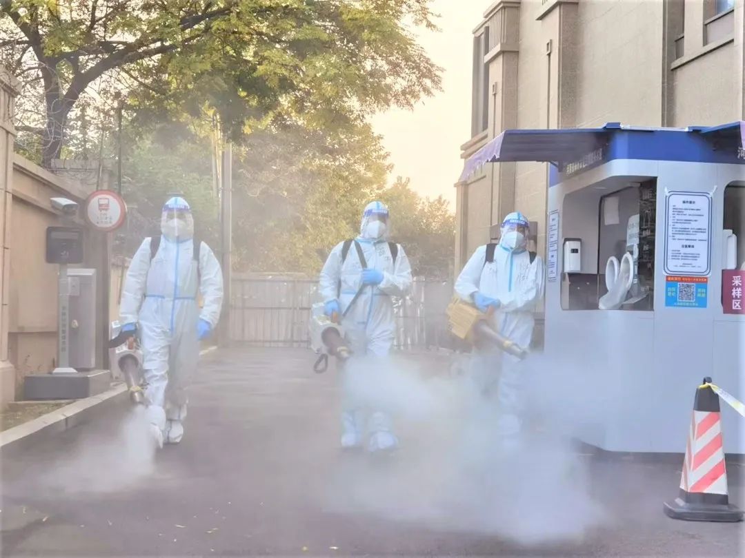 縱然住宿條件艱苦,保潔人員依舊堅持每天4次全方位消殺,核酸檢測點、單元大堂、電梯、樓道間……到處都有他們的身影。