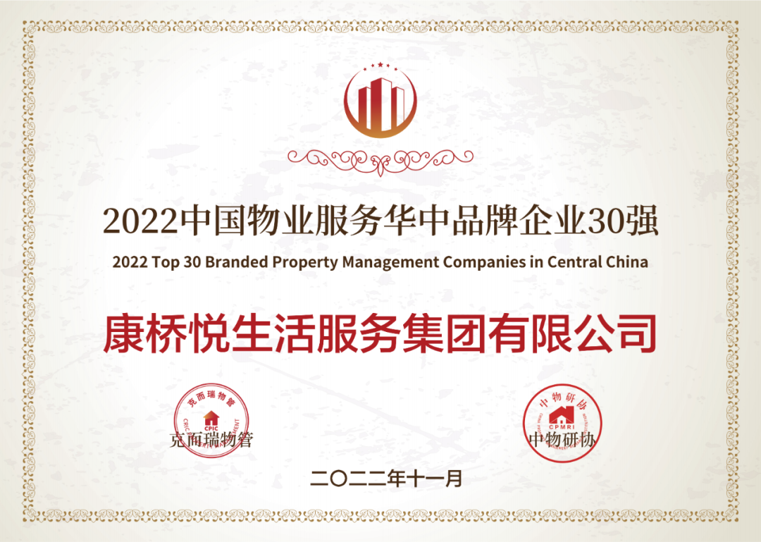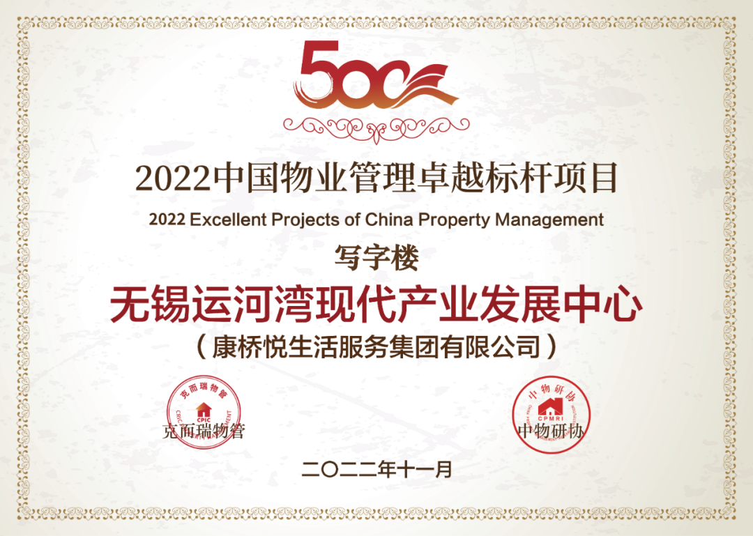 康橋悅生活榮獲“2022中國(guó)物業(yè)服務(wù)企業(yè)品牌價(jià)值100強(qiáng)”、“2022中國(guó)物業(yè)服務(wù)華中品牌企業(yè)30強(qiáng)”、“2022中國(guó)物業(yè)服務(wù)品牌特色企業(yè)——悅商管”、“2022中國(guó)物業(yè)管理卓越標(biāo)桿項(xiàng)目——無(wú)錫運(yùn)河灣現(xiàn)代產(chǎn)業(yè)發(fā)展中心”多項(xiàng)殊榮!