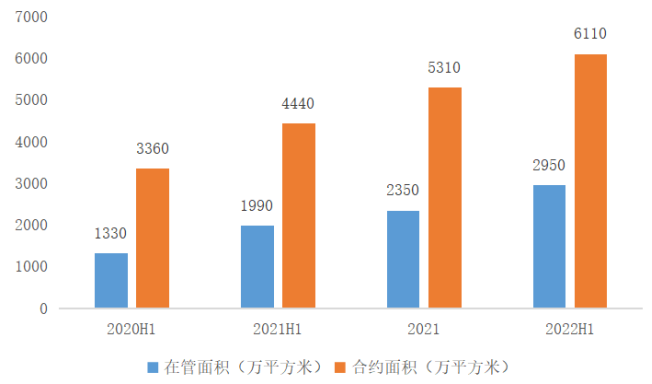 2022年中報(bào)數(shù)據(jù)顯示,悅生活在管建筑面積約29.5百萬(wàn)平方米,較2021年年底增長(zhǎng)48.4%,其中來(lái)自第三方開(kāi)發(fā)商的約22.9百萬(wàn)平方米,占比77.5%;合約建筑面積約61.1百萬(wàn)平方米,較2021年年底增長(zhǎng)37.7%,其中來(lái)自第三方開(kāi)發(fā)商的約48.7百萬(wàn)平方米,占比79.6%;在管面積中,非住宅類(lèi)較2021年同比增長(zhǎng)61.6%。從規(guī)模和增速上看,第三方面積所占比重持續(xù)增長(zhǎng),市場(chǎng)化外拓成果顯著。