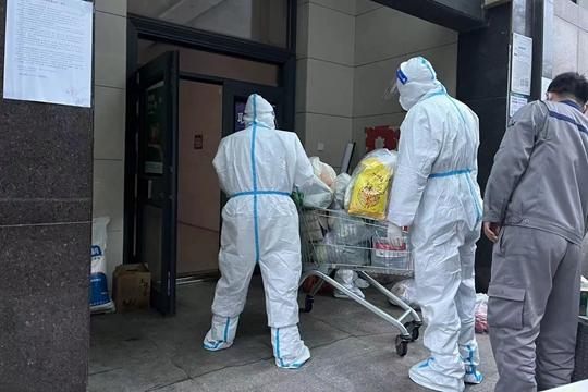 經三名筑一號樓是封控樓棟,居民的生活物資都需要上門配送,康橋物業工作人員和志愿者擔當起此項重任。防護服一穿,他們又變身為 “大白”。每天兩次為居家隔離樓棟配送物資,不定時為居民買藥、扔垃圾、定期消殺,滿足居民的生活需求。趙國旺、范盼盼、杜朝峰、張俊偉等志愿者有效確保了居民物資“最后100米”的暢通無阻。