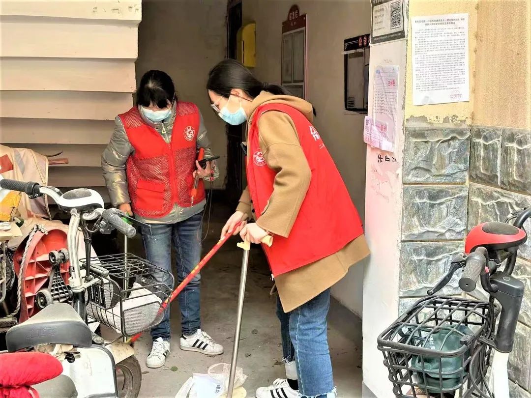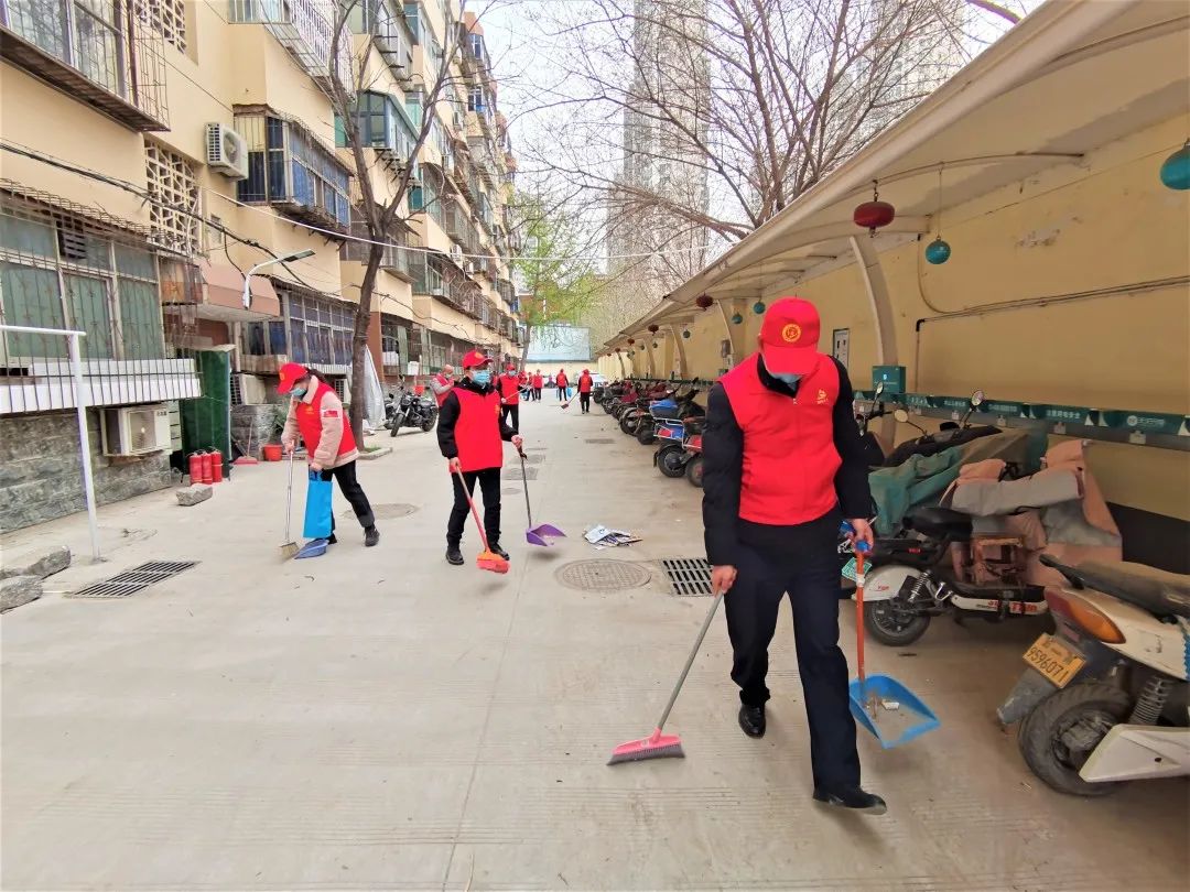 啟動儀式各項議程結束后,悅生活黨支部黨員與志愿者們深入轄區桃源社區骨科醫院家屬院、桃源路45號院,祥和社區鄭大市場南街2、3號院共計4個樓院,參與到社區衛生清潔、環境美化、清除小廣告、擺放車輛、消防檢查、文明宣傳等志愿服務活動中。