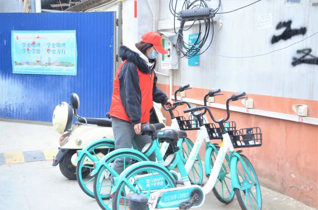 停放雜亂的非機動車與共享單車十分影響城市容貌,隨意停放在人行道上的車輛會堵塞道路,更會影響消防救援工作,存在極大安全隱患。志愿者們主動出擊,騰挪人行道上的違停車輛,讓文明“歸位”。