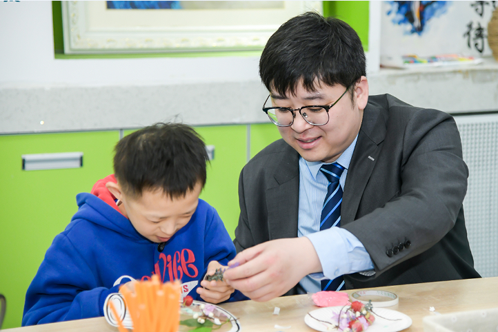 儀式結(jié)束后,在工作人員帶領(lǐng)下,出席本次活動(dòng)的領(lǐng)導(dǎo)、嘉賓、悅生活黨支部代表及長(zhǎng)江商學(xué)院39期河南同學(xué)代表,來(lái)到孩子們的生活區(qū)、學(xué)習(xí)區(qū)以及康復(fù)區(qū)等,與孩子們互動(dòng)交流。