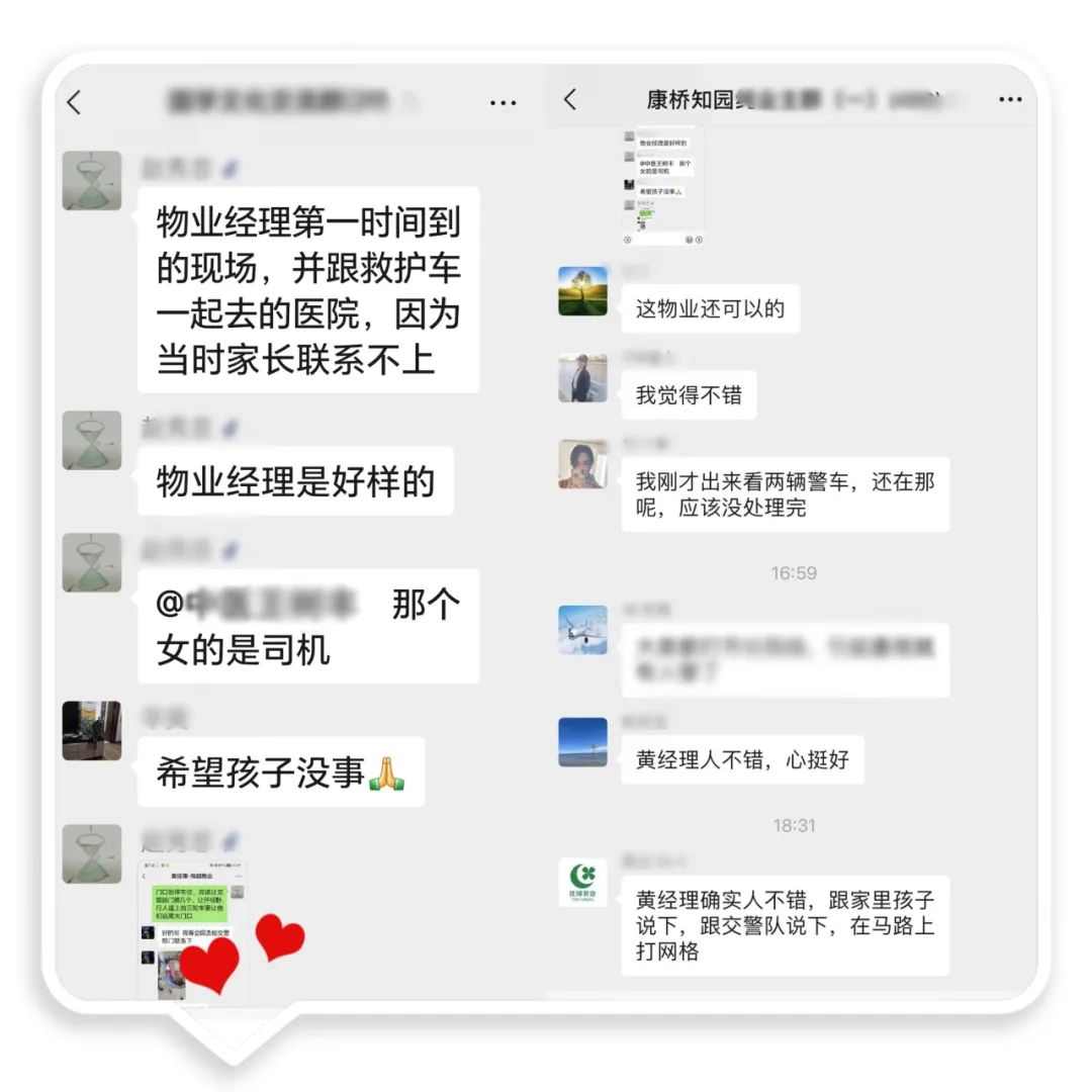 在車上除了安撫孩子情緒外,黃晨星安排管家一對一向業主發送相關消息,并結合監控崗查看小孩出入的單元,最后確定了孩子家庭住址,隨即與孩子家屬進行聯系,并對家長進行了安撫,到醫院后黃晨星協助掛號及各項檢查,最后家長趕到醫院,十分感謝物業工作人員對孩子的照顧,業主群內也受到點贊及認可!