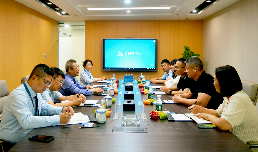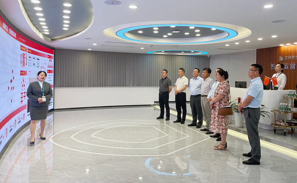 7月14日,原河南省外事辦副主任、廳長級巡視員、鄭州市中小企業協會顧問郭俊峰,鄭州市政協常委、協會名譽會長張新東,鄭州市中小企業協會書記龔國友等一行到悅生活參觀調研,悅生活副總裁賈以法等全程陪同接待。
