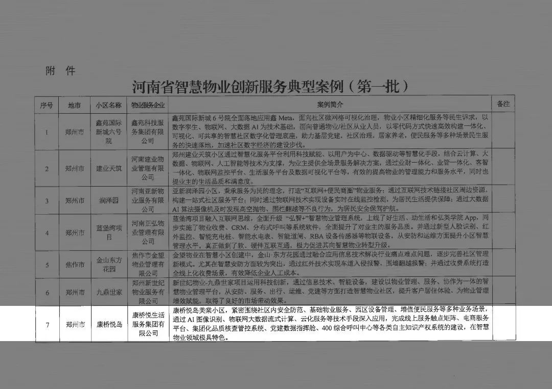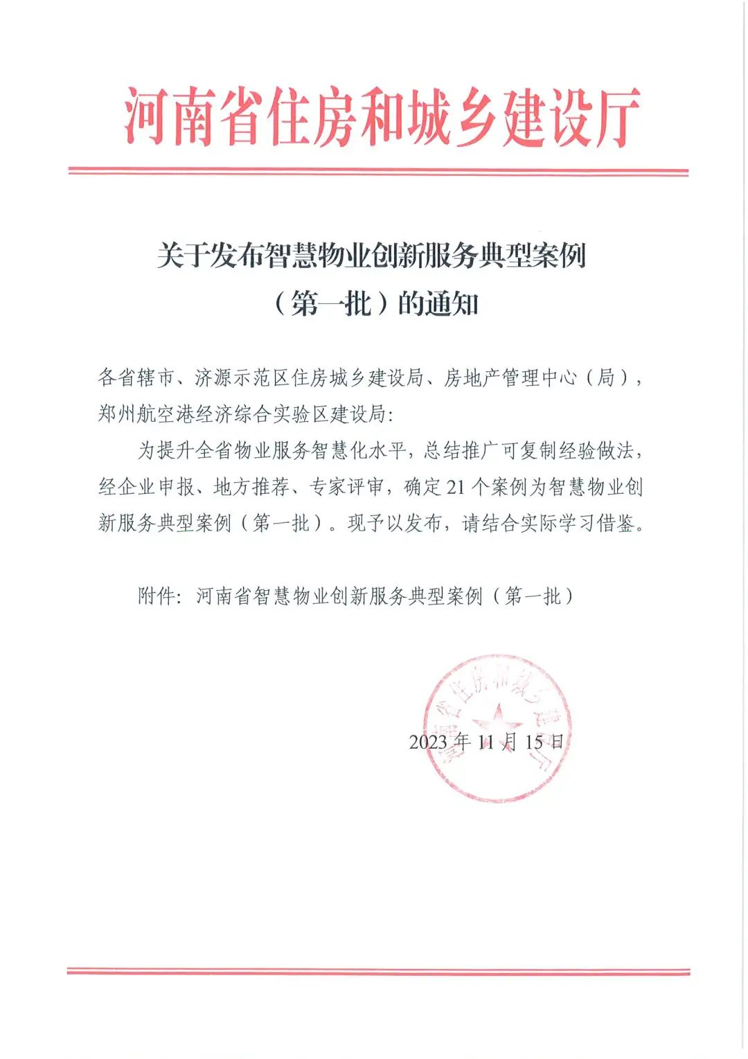 近日,河南省住房和城鄉建設廳發布了《關于發布智慧物業創新服務典型案例(第一批)的通知》,確定并發布了首批21個智慧物業創新服務典型案例,康橋悅生活在管項目——悅島美棠小區入選該批案例名單。