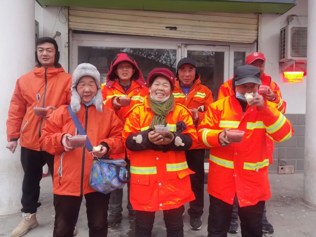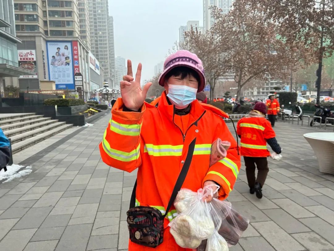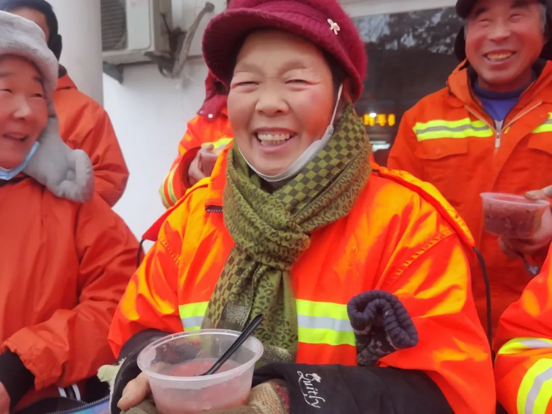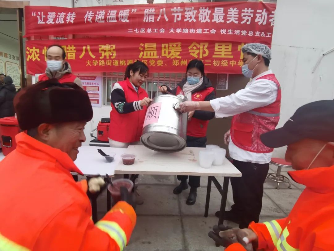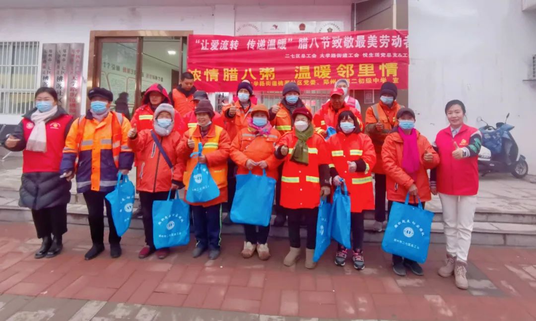 為二七區的環衛工人們送上熱粥和手套