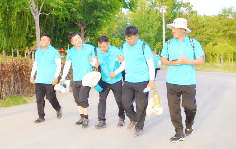 路雖遠而行則必至,8個小時,33公里,除了路程的長度和難度,當天最大的挑戰(zhàn)是達38度的高溫天氣,每個人都大汗淋漓,部分隊員體力下降,身體水分消耗巨大,但團隊成員不拋棄不放棄,相互攙扶、相互鼓勵,并完成了多項活動挑戰(zhàn),彰顯了康橋悅生活團隊凝心聚力、團結奮進的精神風貌。