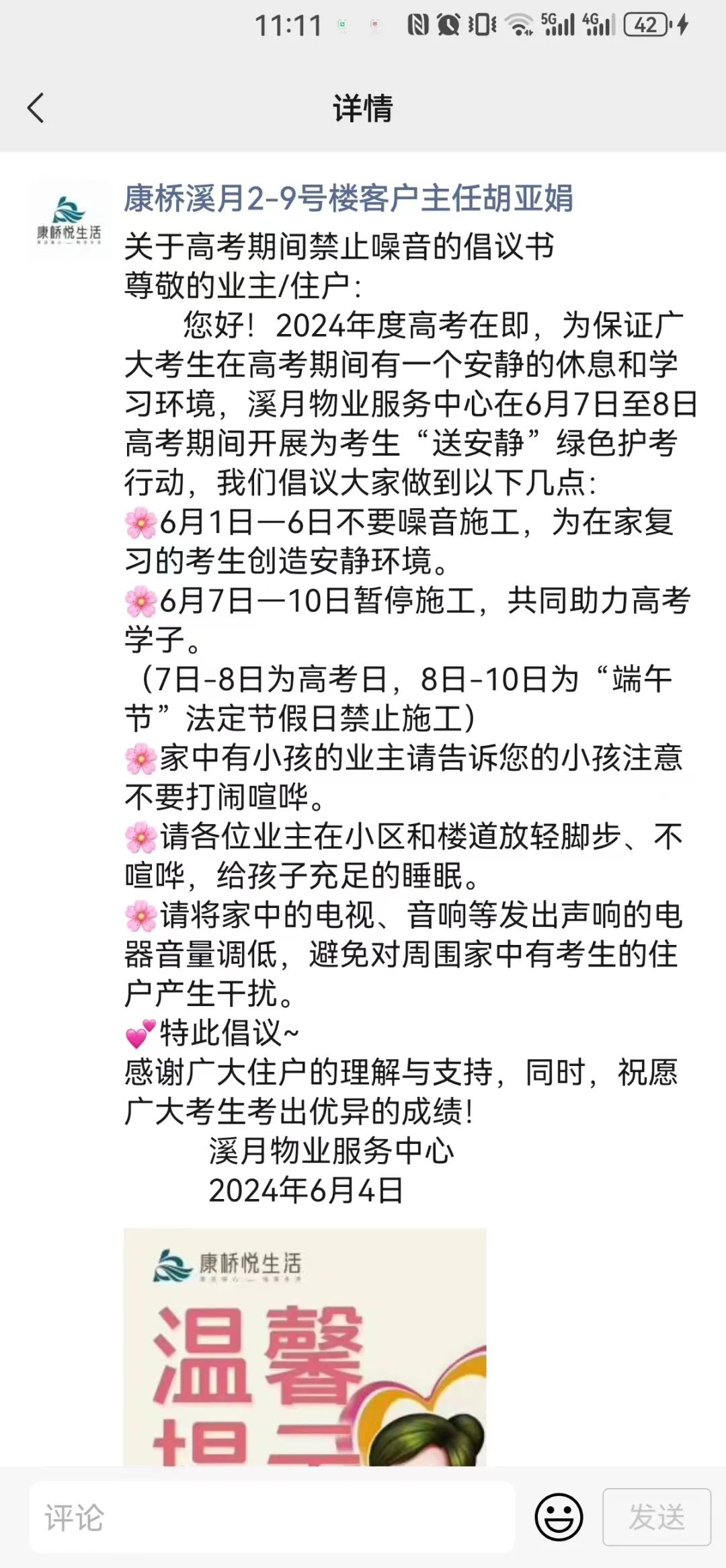 康橋悅生活向業主們發出