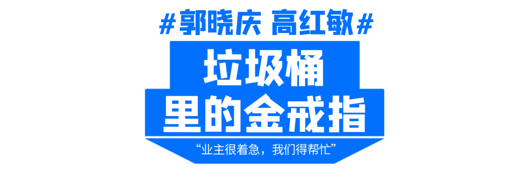 5月初,有業主急急忙忙到郟縣鳳翔府物業服務中心前臺,稱自己的結婚戒指掉到垃圾桶里跟垃圾一起扔掉了,希望物業能幫忙找找。因為是結婚戒指,又剛結婚不久,意義比較深重,業主很焦急。物業服務中心的前臺郭曉慶詳細詢問了業主把垃圾扔下來的時間、具體投放到哪個位置的垃圾桶,而后聯系該樓保潔高紅敏,高紅敏頂著烈日,用棍子將垃圾一點點的扒開,仔仔細細的查看每個垃圾桶,終于在最后一個垃圾桶里找到了這枚戒指。