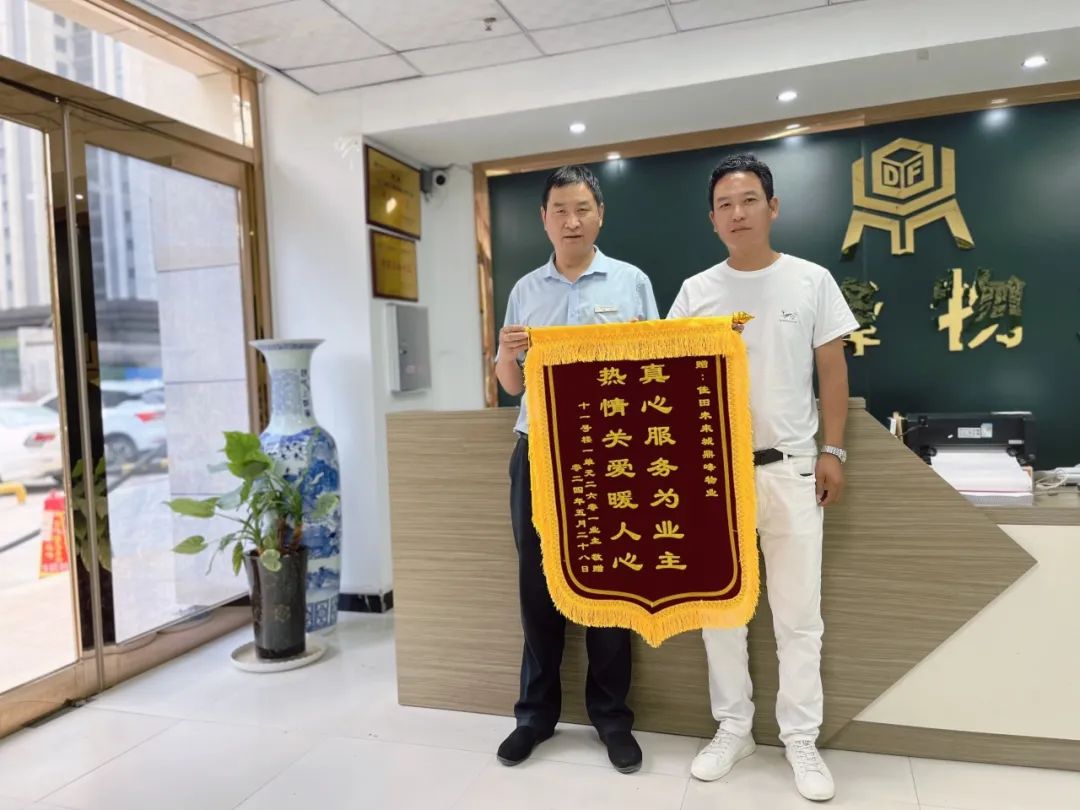 5月28日,鼎峰物業佳田未來城物業服務中心的三位客服梁悅、劉露露、李文娟近日收到了一面錦旗,是業主王先生從外地回來時特意趕制的,王先生常年在外做生意,家中年邁的父母帶著年幼的孩子在家,而我們的三位樓管每天都會輪流去家中看望老人孩子,和老人講話、幫老人打掃衛生。