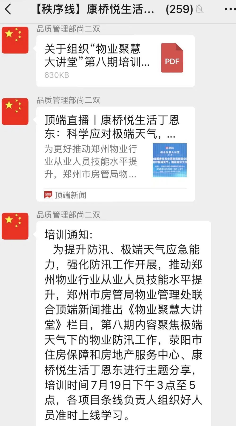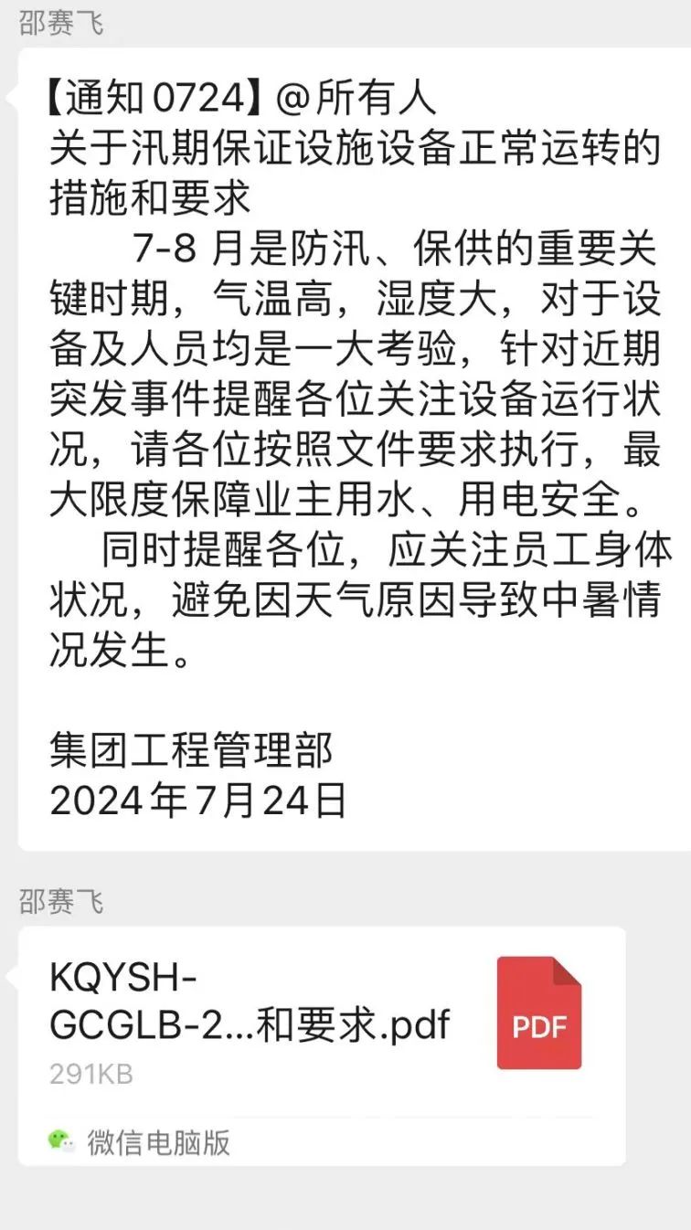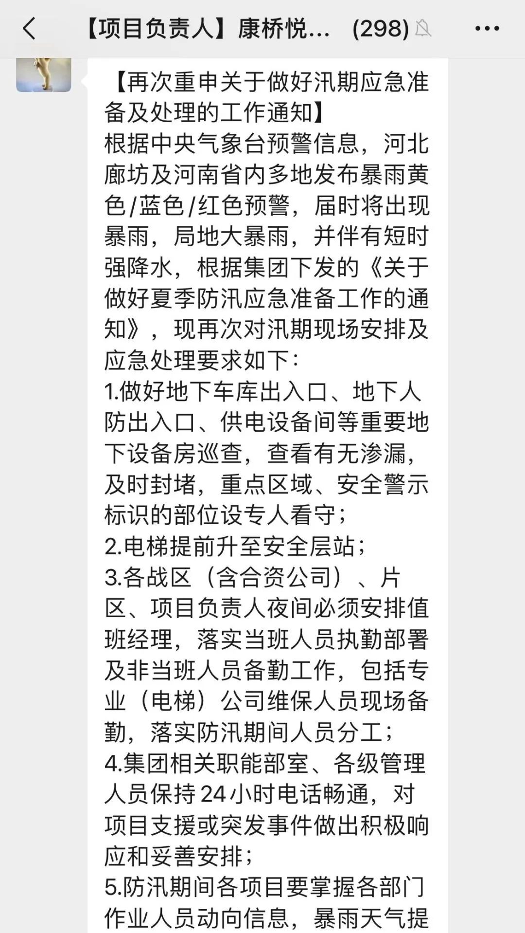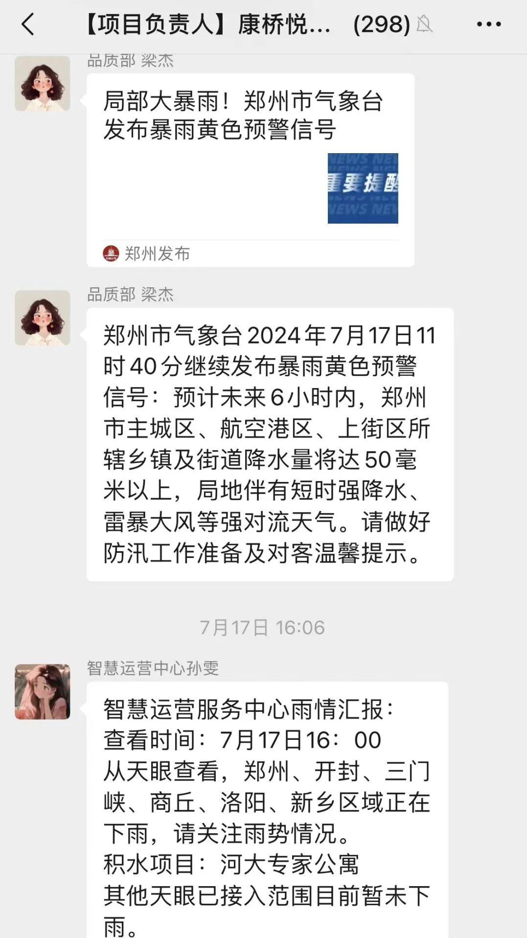 汛期以來,集團公司對防汛工作高度重視,多次下發各類防汛工作要求,并進行多次防汛培訓及演練。公司智慧運營中心實時通過天眼及大數據關注各項目的汛情動向,及時通知相關人員跟進,最大限度做好預防工作。