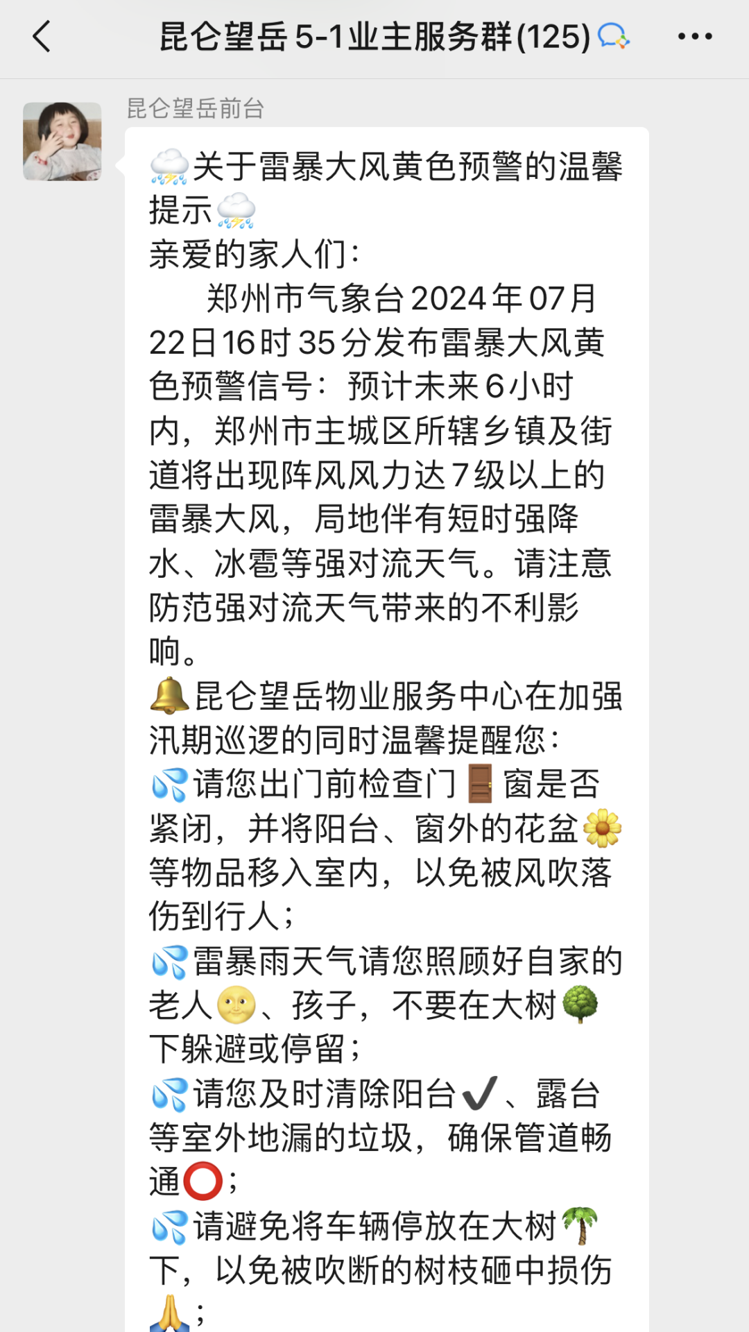 各項目時刻關注天氣預報,及時通知業主做好降雨防范;嚴密檢查園區內各項設備設施,準備好充足的防汛物資,以便保障汛期內園區正常運轉。