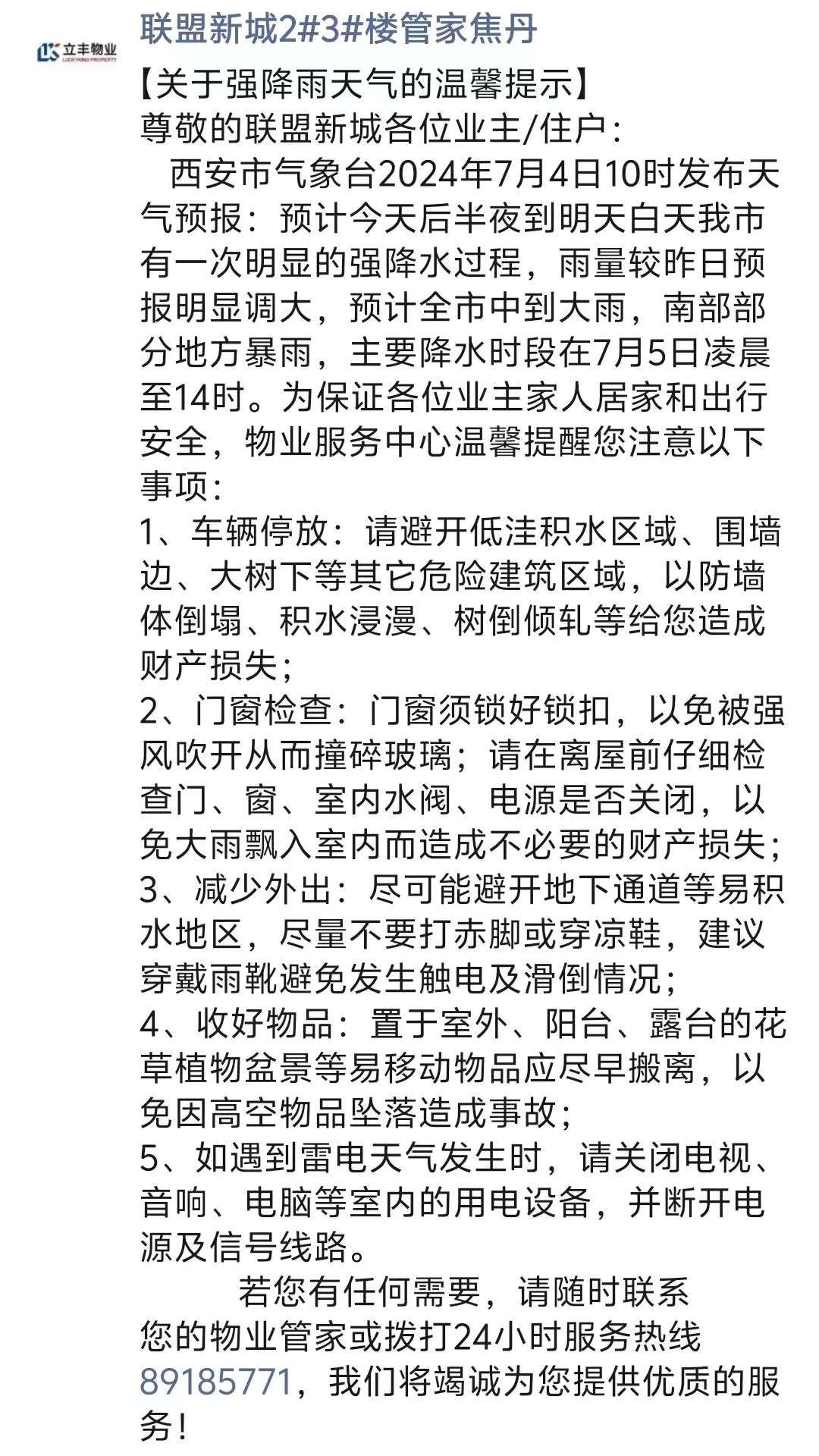 物業人員貼心地在雨中為客戶撐傘,準備了傘套方便客戶出入辦公地點,指引客戶的愛車尋找停車位,檢查車門車窗是否關嚴,防止雨水濺入,每一個細節都在詮釋我們服務的用心。