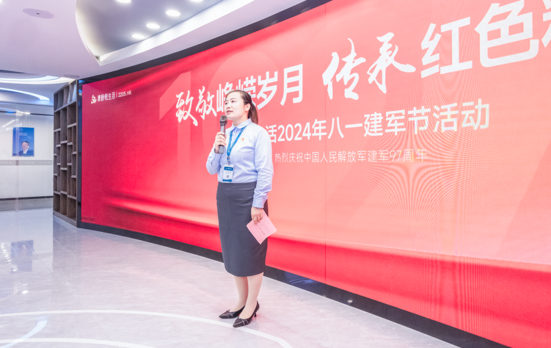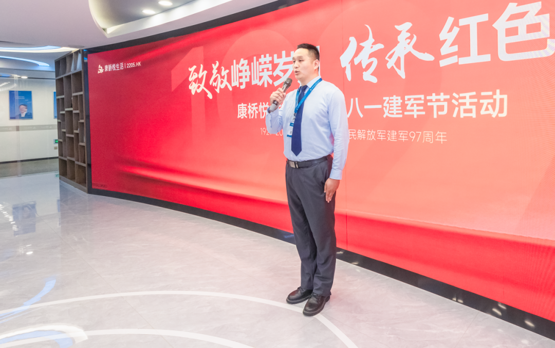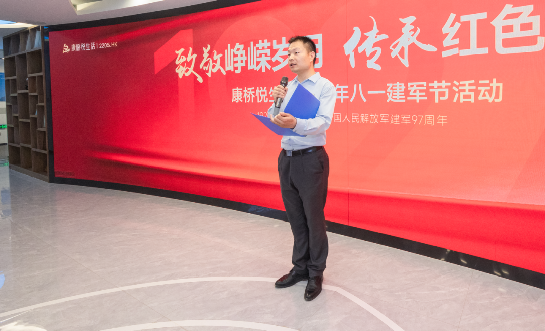康橋悅生活黨總支第一支部書記方麗穎代表黨總支為大家送上了節日的祝福,希望大家將八一精神融入到今后的工作中去。