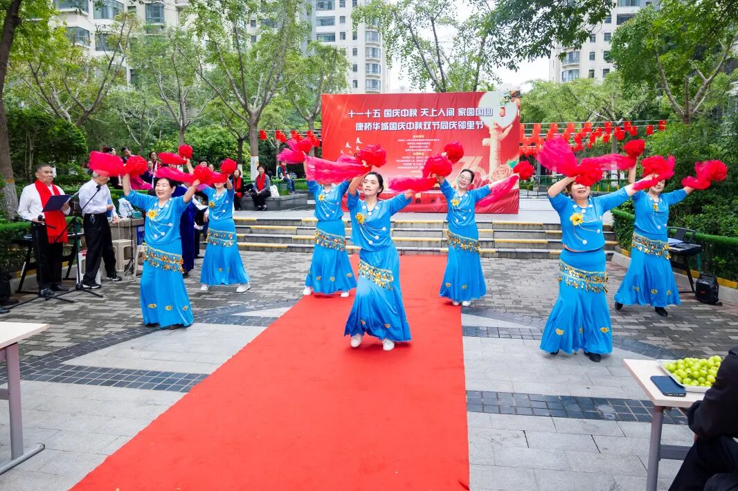 除此之外,康橋悅生活集團(tuán)黨委聯(lián)合康橋華城社區(qū)黨總支、康橋華城社區(qū)關(guān)工委、康橋華城社區(qū)幸?禈蛏傧汝(duì)等組織單位,共同在康橋華城社區(qū)舉行雙節(jié)同慶鄰里節(jié)活動;顒右詧F(tuán)圓共享為主題,設(shè)置果香四溢的月餅茶話會、老少同樂的文藝匯演,吸引200余名居民參與,共慶雙節(jié)。