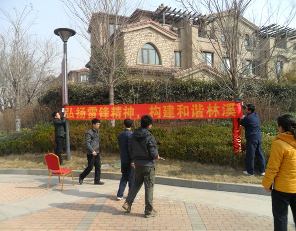 上午9:00林溪灣物業(yè)服務(wù)中心客服部和工程部人員在小區(qū)明顯位置懸掛起“弘揚(yáng)雷鋒精神,構(gòu)建和諧林溪”的條幅,拉開了學(xué)雷鋒活動的帷幕。活動主要分四個步驟進(jìn)行: