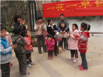 活動在下午3點準時開始,首先物業服務中心邀請谷得景觀公司資深綠化專家為業主講解小區名貴樹木及保養方法,然后組織小業主們撿拾綠化帶里垃圾,培養孩子們愛好環境從我做起的習慣。由于服務中心提前宣傳及時到位,部分業主早早的就來了到活動地點等候。綠化趙師傅熱情洋溢地給業主們講解樹木種植養護的一些常識,使小志愿愿者對小區綠化植物有了更深的認識。園區講解完畢后,我們帶來他們清理綠化帶內的垃圾雜物,他們只是五六歲的孩子,卻在家人的陪同下,立即開始忙活起來——一手拿著夾子,一手拿著垃圾袋,把撿到的雜物放進袋子里。