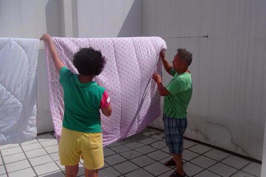 活動一經推出,健康的晾曬方式、貼心的零距離服務吸引了小區業主積極參與。業主紛紛將衣物帶至專門區域準備晾曬,由于當天樓層頂端晾曬區風力較大,物業中心工作人員在晾曬現場不斷幫助和引導業主正確的晾曬衣物。大家齊心協力,衣物得到了有序晾曬。