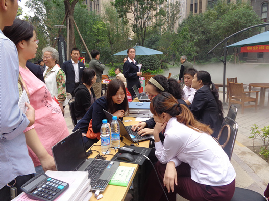 活動開始后,園區業主陸陸續續到現場排隊咨詢辦理代扣業務,不少業主對這樣的服務表示認可。6號樓業主王先生說“工作忙,有的長期在外出差,經常沒有時間來交物業費,水電費現在都是銀行代扣,現在物業費辦了代扣,就不用每個月去物業公司交,省事不費心,還可以參加抽獎活動,試一下手氣,挺好的。”