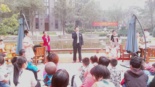 活動開始前,小區的老人和年輕業主都早早的來到了北門廣場等待活動的開始,活動開始之后,金域上郡1號院客服部徐經理首先代表物業服務中心全體員工向小區的業主們送上最真摯的祝福,祝全體老人重陽節快樂、健康長壽。