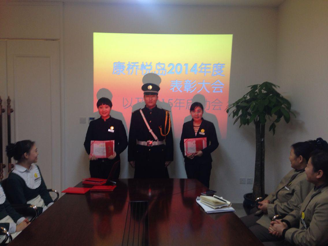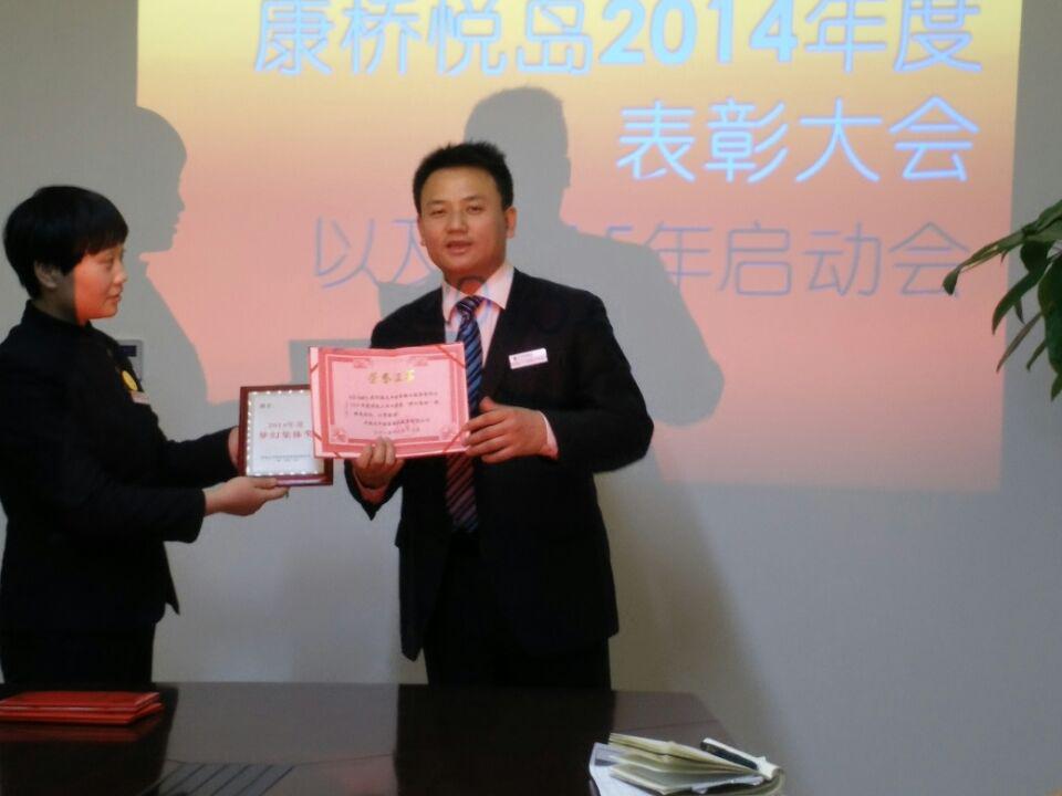 隨后,會議進入主題時刻——對2014年度表現突出的人員和集體進行表彰。表彰開始前,徐經理首先對公司評優評先通知進行宣讀,然后伴隨著高亢激昂的音樂,依次頒發新人進步獎、優秀員工獎、杰出奉獻獎,獲獎人員在大家的掌聲和贊許中上臺領獎并發表獲獎感言,大家紛紛表示在新的一年里會再接再厲,以更加飽滿的熱情投入工作,全心全意服務于業戶,爭取獲得更大的進步和更多的榮譽。