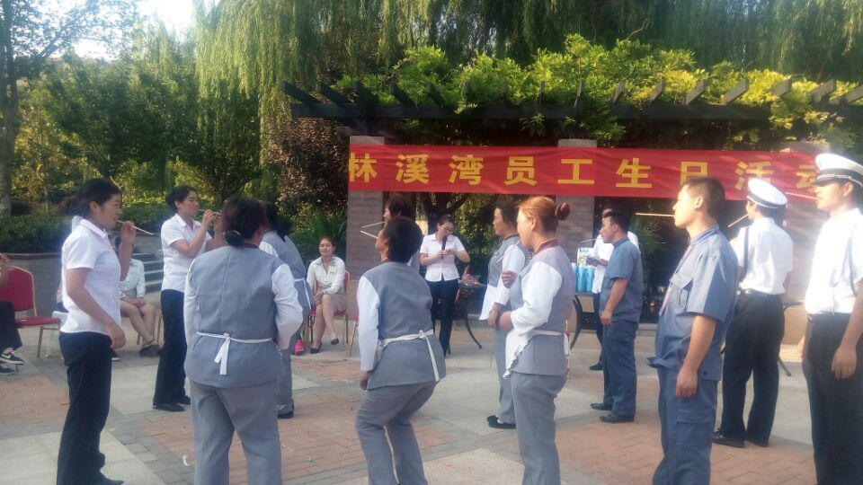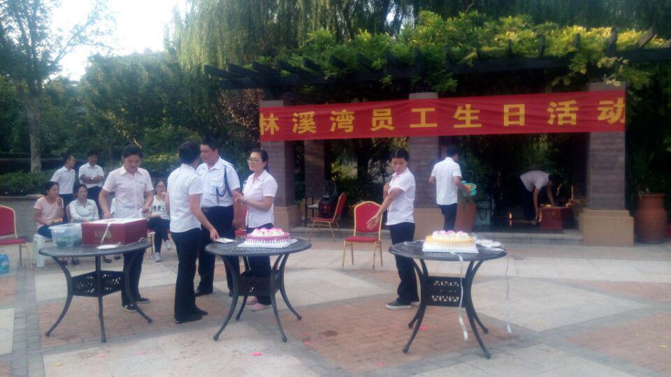 下午3點30分,生日會在主持人一聲熱情響亮的問好聲中拉開了序幕,接著,林溪灣服務中心負責人沈亞東對過生日的壽星們致以誠摯的問候和生日祝福。“祝你生日快樂……”這熟悉而美妙的旋律響起的時候,生日蛋糕緩緩被推出來,生日的員工自發(fā)地圍成一個圈,員工們齊唱生日歌,并許下自己的生日愿望。最后,大家一起品嘗蛋糕,現(xiàn)場氣氛再次被推向高潮,歡聲笑語回蕩在這個美麗的公園里。