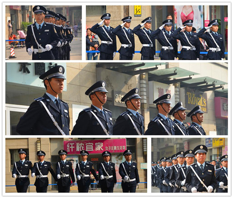 比賽首先舉辦了慶祝國慶64周年敬禮儀式,嘹亮的國歌,肅穆的領導嘉賓,整齊的護衛隊員,展現出新康橋悅生活對實現“中國夢”的人民幸福、社會和諧而努力的堅定決心。隨后,來自康橋華城、康橋花園、康橋上城品、康橋金域上郡1號院及2號院、康橋溪山御府、康橋金域溪山案場的護衛代表隊依次向在場評委、嘉賓以及業主展示了的護衛隊員日常巡邏、日常交接班、正步走、標準軍禮等動作。金域溪山案場護衛隊以優異地表現贏得冠軍。