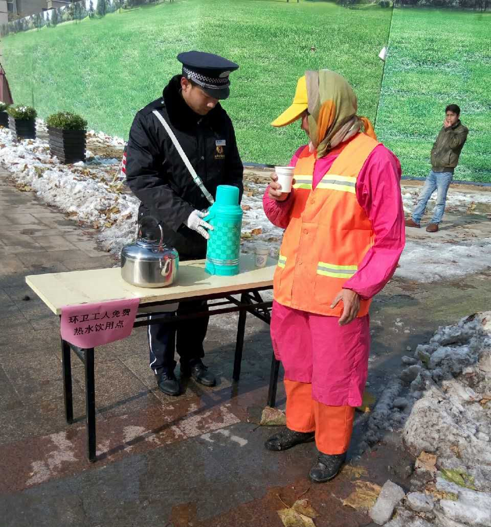 環(huán)衛(wèi)工人王師傅在路邊工作時發(fā)現(xiàn)了服務(wù)點,工作人員為她倒上了一杯熱水。王師傅表示說:“非常感謝新康橋悅生活的溫暖活動,雖然工作是挺辛苦的,那么寒冷的天在外頭還能喝到熱水,確實讓我非常的感動!”