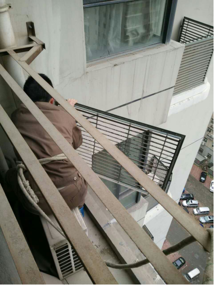 2月13日初六早上8點多,康橋華城服務中心前臺接到8號樓2單元19樓業主的電話報修,稱家里放置空調外機的格柵被風吹的來回擺動,非常危險。物業得知后,立即派出幾名工程維修工在客戶主任帶領下緊急前往8號樓。