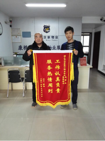 為了查明錢包去向,蒿濤帶業主來到監控中心。通過調取監控發現是園區的一位業主撿到了錢包,蒿濤迅速調區此業主的信息,并上門拜訪,錢包又回到楊先生手邊。從發現錢包遺失到找到錢包只用了四十分鐘左右,楊先生非常高興并拿出500元作為酬謝,蒿濤毅然拒絕了,說:“這都是我們應該做的。”楊先生出于感謝,3月13號送到物業服務中心錦旗一面,對于蒿濤工作的認真負責和監控員楊澤曉的服務熱情周到表示感謝。